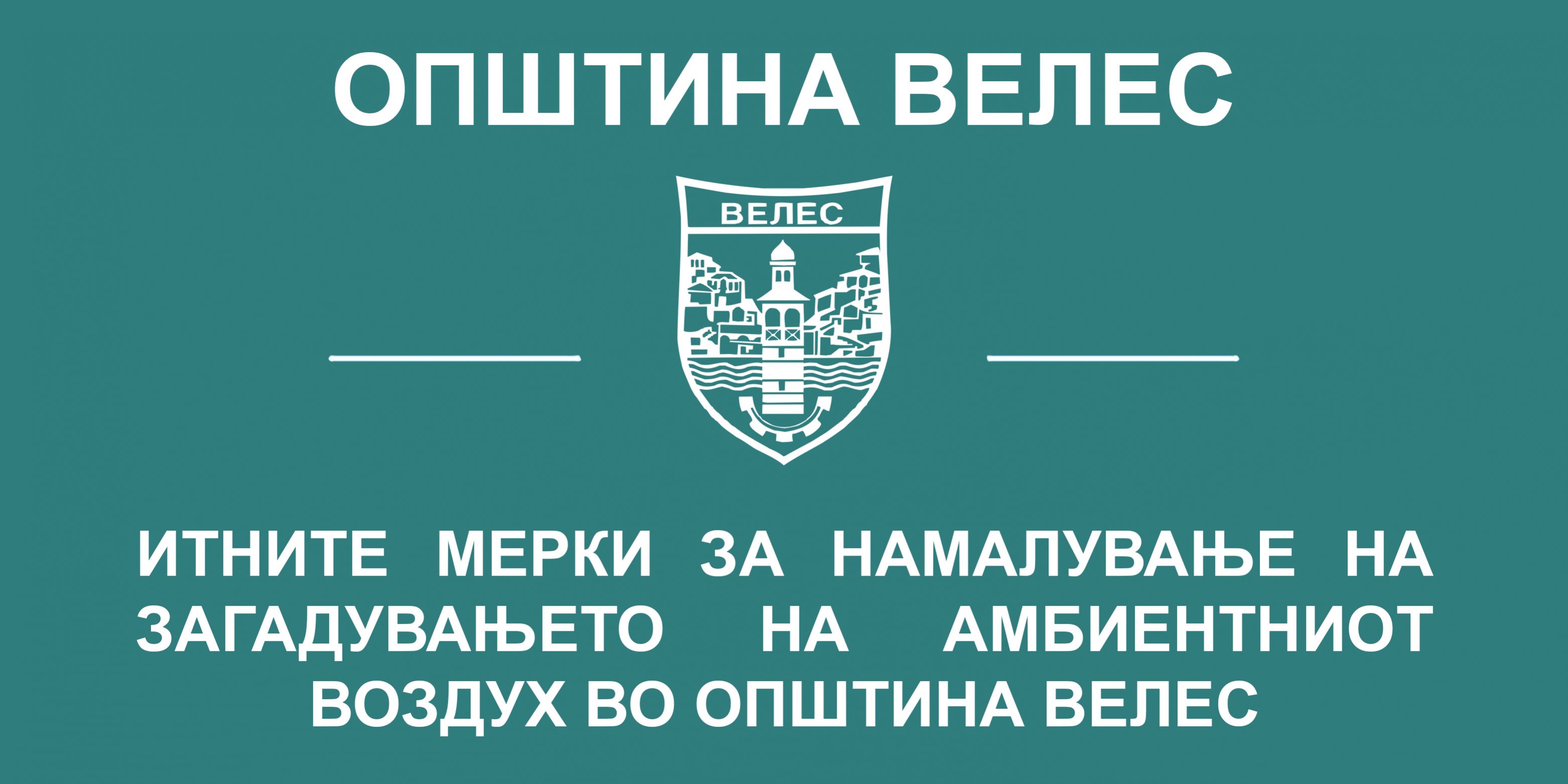 Согласно Заклучокот на Советот на Општина Велес за активирање на итни мерки за намалување на загадувањето на амбиентниот воздух на самиот почеток на грејната сезона, Општина Велес заради информирање на граѓаните ги реобјавува ИТНИТЕ МЕРКИ ЗА НАМАЛУВАЊЕ НА ЗАГАДУВАЊЕТО НА АМБИЕНТНИОТ ВОЗДУХ ВО ОПШТИНА ВЕЛЕС.