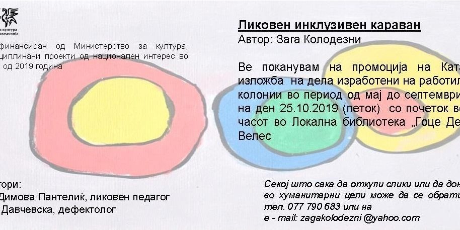 Ве известуваме дека вечер во локалната библиотека „ Гоце Делчев“ со почеток во 19:00 часот ќе се одржи промоција на делата од Ликовен инклузивен караван на кој учествуваа ученици со попреченост и талентирани ученици од општинските основни училишта.