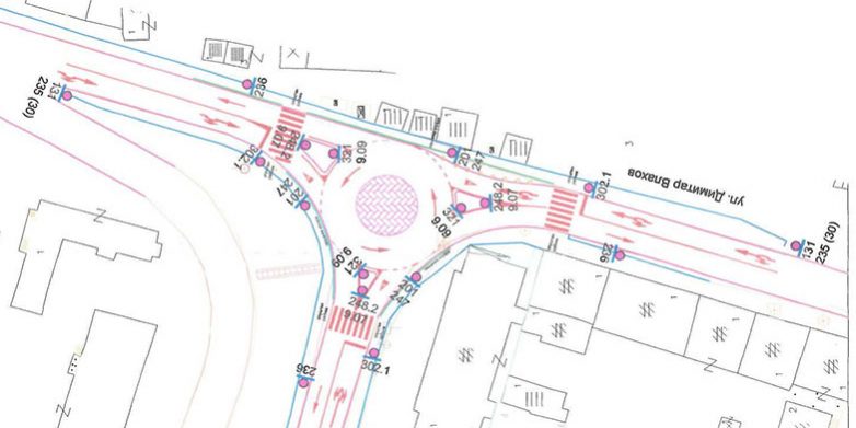 Сообраќајното решение предвидува воведување на мини кружен тек, со издигнат средишен остров. На овој начин сообраќајот ќе се подобри. Дополнително, мини кружниот тек има за цел намалување на брзината на движење на возилата. На сите приоди кон кружниот тек ќе се забрани запирање и паркирање на автомоболи за да се овозможи непречен проток на возилата и прегледност на сите пешачки премини.