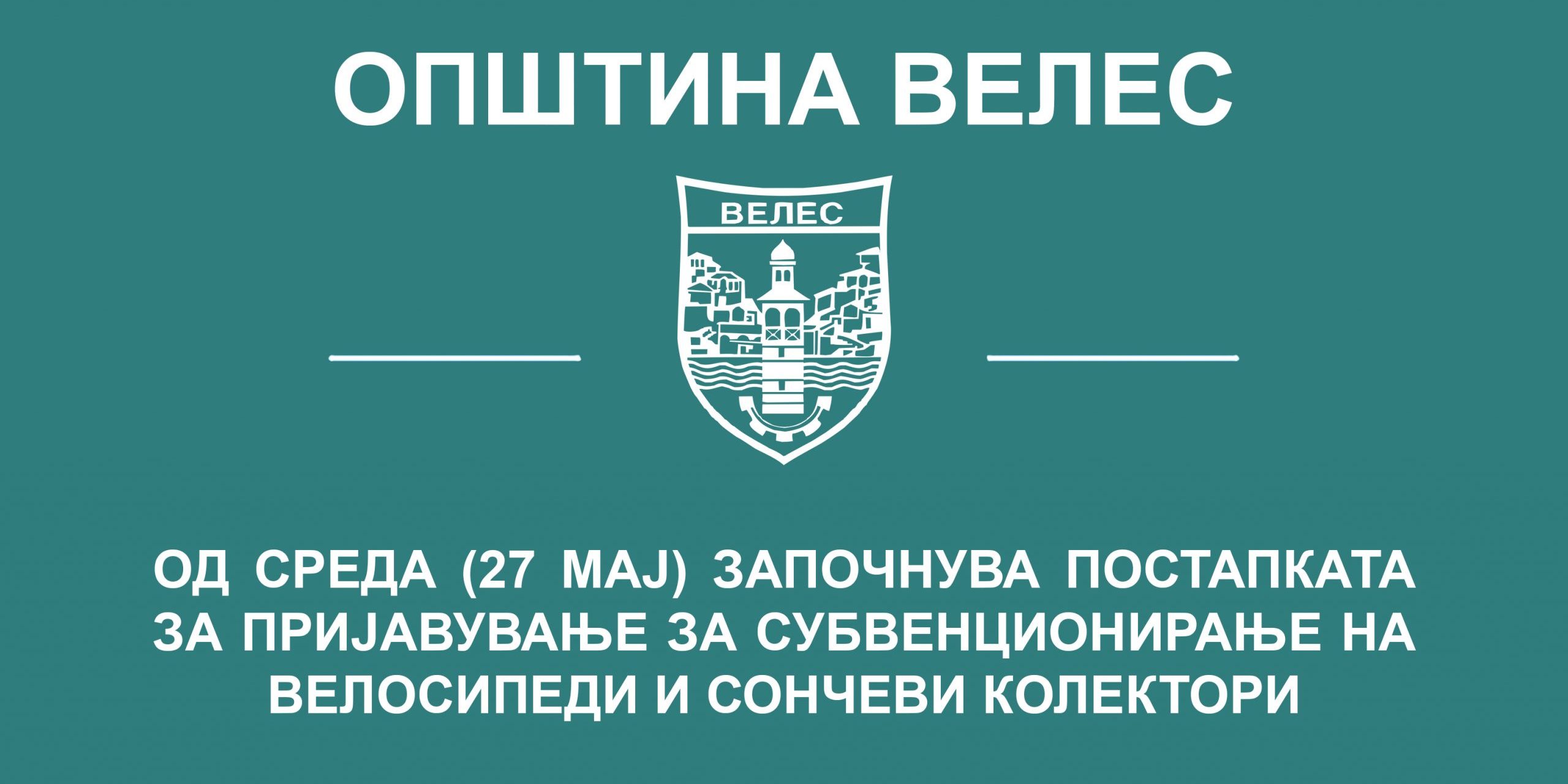„Советот на Општина Велес, по мој предлог донесе одлука за субвенционирање на купен велосипед од страна на физички лица во вредност до 3.000,00 денари, за што се обезбедени вкупно 500.000,00 денари, како и за субвенционирање на купен сончев термаленен колектор во висина до 20.000,00 денари, за кој исто така се обезбедени 500.000,00 денари од општинскиот буџет”, изјави на денешната прес конференција градоначалникот Коцевски.