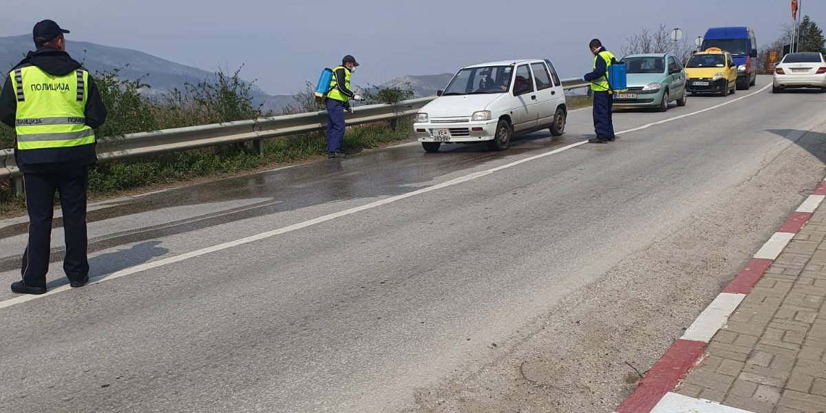 За таа цел на поставените контролни пунктови на влезовите во Велес се врши контрола и дезинфекција на сите моторни возила кои влегуваат и транзитираат низ градот.