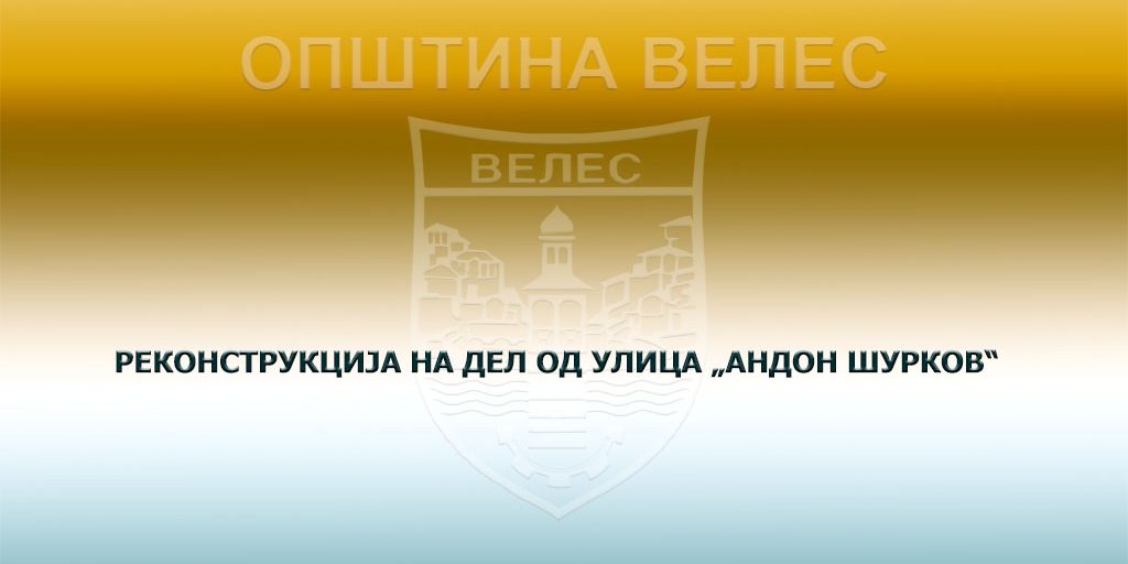 Се известуваат граѓаните на Велес дека во тек е реконструкција на дел од улицата „Андон Шурков“ и тоа од бензиската станица Црна Река до бензиска станица Макпетрол. Во текот на изведувањето на градежните работи сообраќајот ќе се одвива по одобрен сообраќаен проект за времен режим на сообраќај со поставена сообраќајна сигнализација.