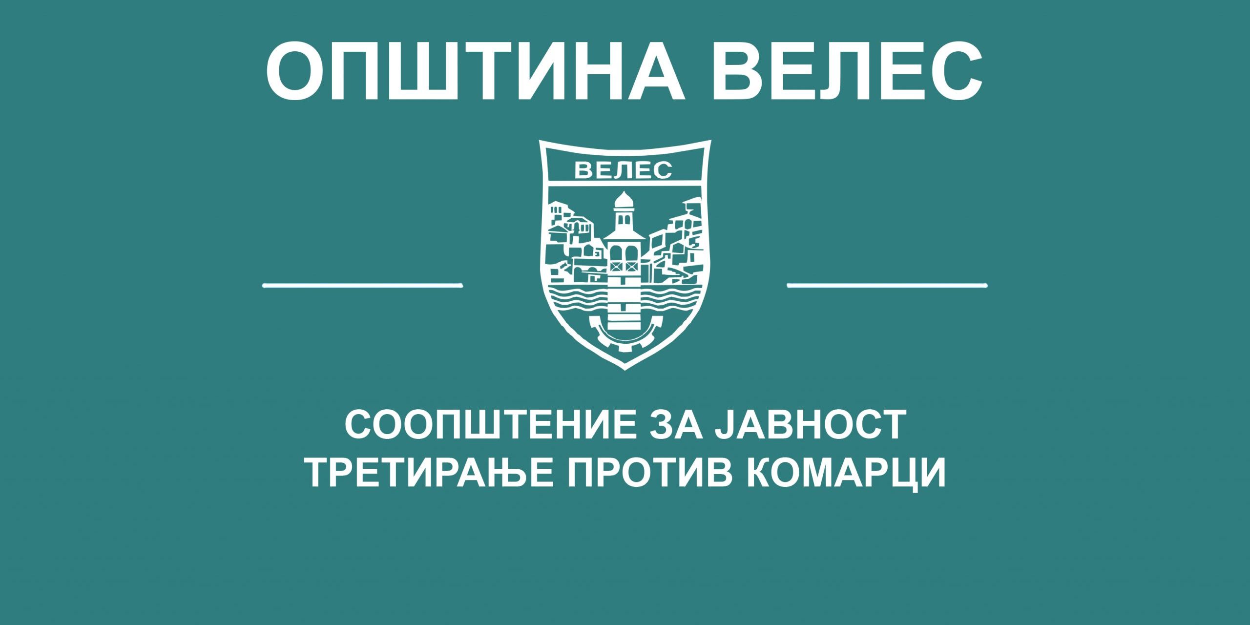 Поради реакциите од страна на жителите на Општина Велес во врска со користеното средство за авионско третирање против комарци што Општина Велес редовно го спроведува неколку пати во тековната година, Општина Велес ја известува јавноста дека: