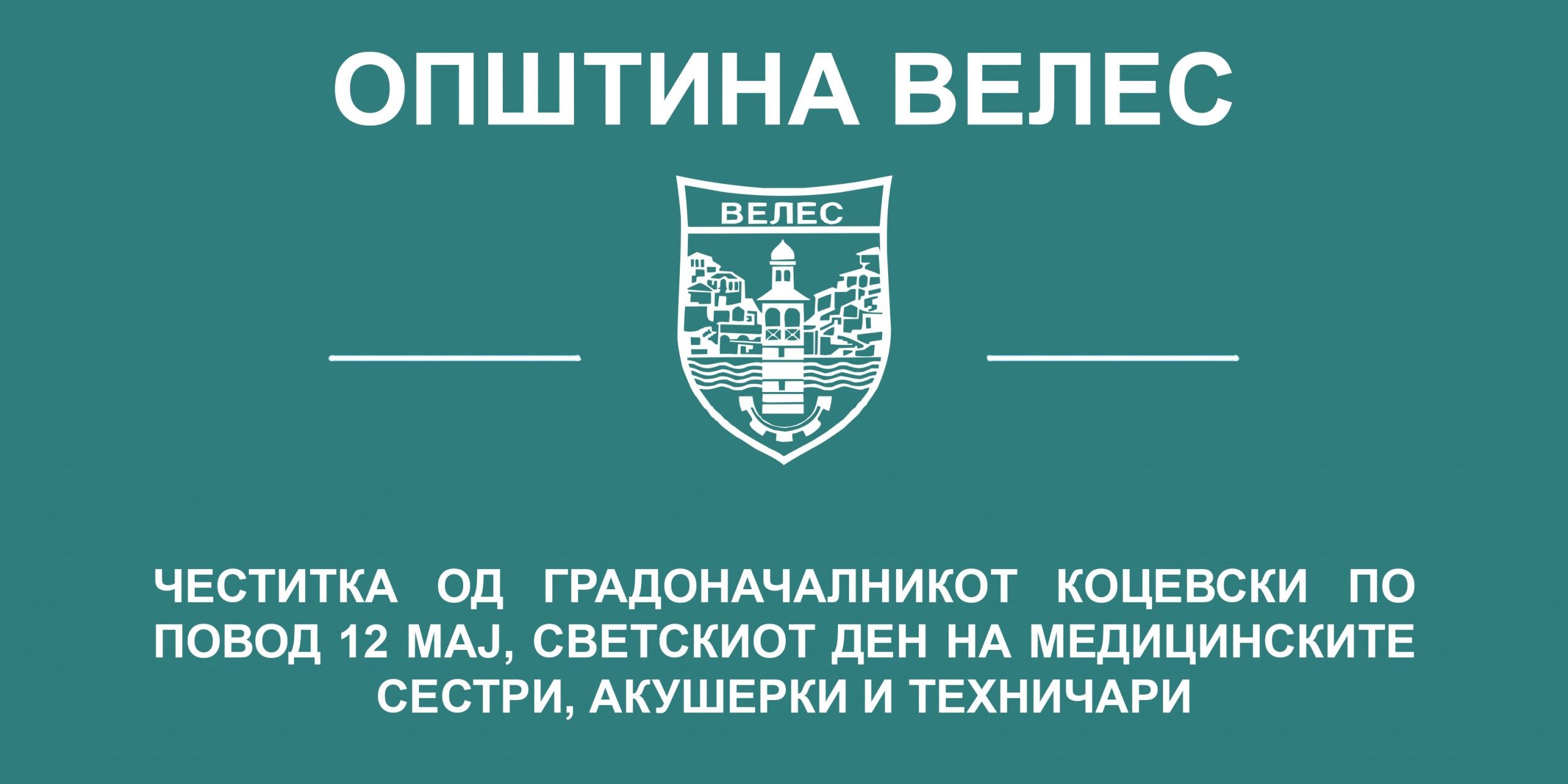 Во име на Советот на Општина Велес, во име на граѓанките и граѓаните на Општина Велес и во свое лично име, на сите медицински сестри, акушерки и техничари им го честитам 12 мај, Светскиот ден на медицинските сестри, акушерки и техничари.