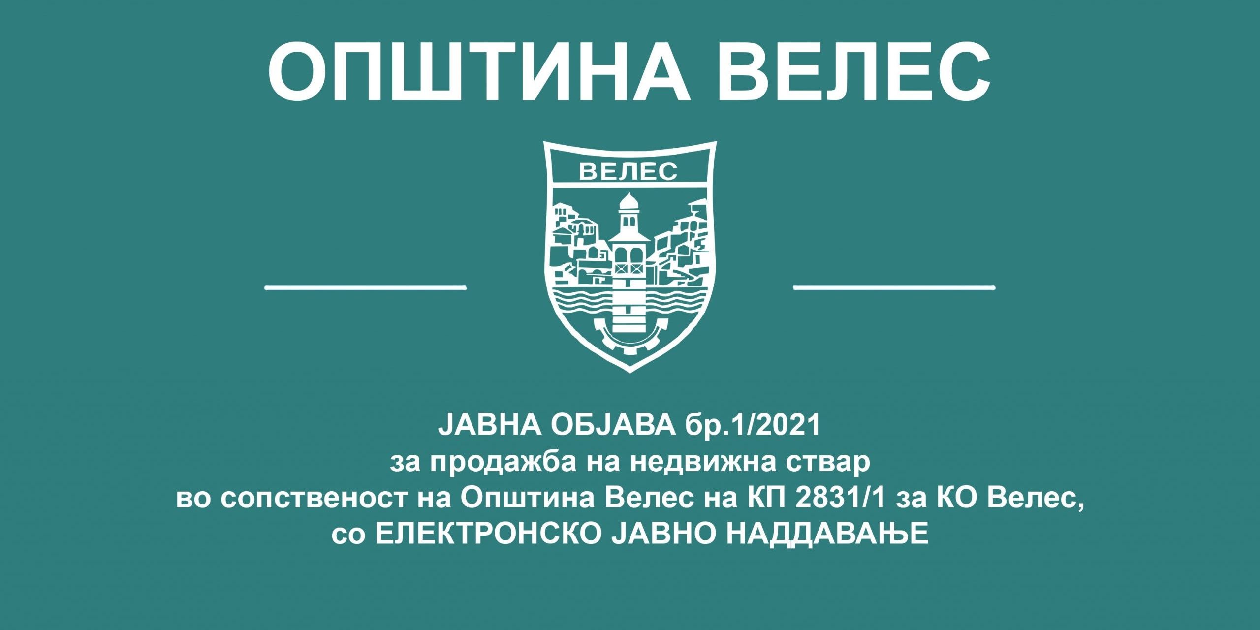 Врз основа на член 4,24,25,26,27,28,29 и член 67  од Законот за користење и располагање со стварите во државна сопственост и со стварите во општинска сопственост („Службен весник на Република Македонија“ бр. 78/15, 106/15, 153/15,190/16, 21/18,101/19 и 275/19),  и Одлука на совет на Општина Велес за продажба на недвижна ствар во сопственост на Општина Велес на КП 2831/1 за КО Велес, бр.25-4913/6 од 24.12.2020 година (Службен гласник на Општина Велес број 20/2020), Комисијата за недвижни и движни ствари сопственост на Општина Велес согласно ја дава следната