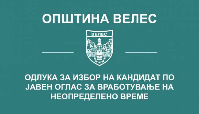 Oдлука за избор на кандидат по Јавен оглас за вработување на неопределено време