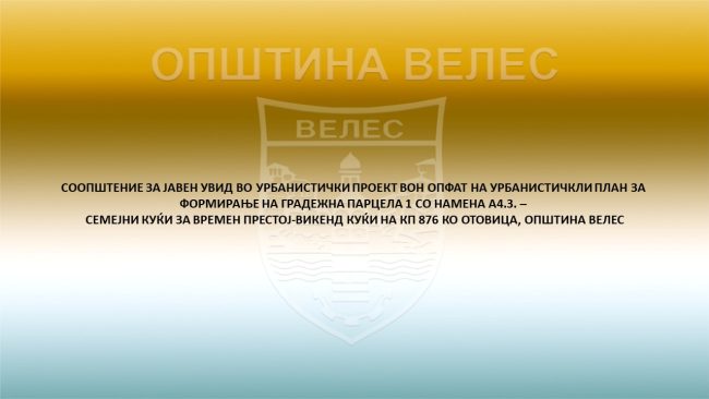 Се известуваат грѓаните на Општина Велес, дека од денеска, среда (15 април 2026), ќе започнат градежни работи за реконструкција на улица „Васил Главинов“ од спој со улица „Киро Ќучук“ ( после новоизградената фонтана ) до спој со улица „Киро Ќучук“ и улица „Белградска“. Површини од улицата „Киро Ќучук“ не се предвидени за работа. Реконструкцијата опфаќа…