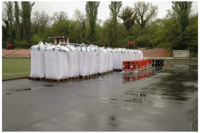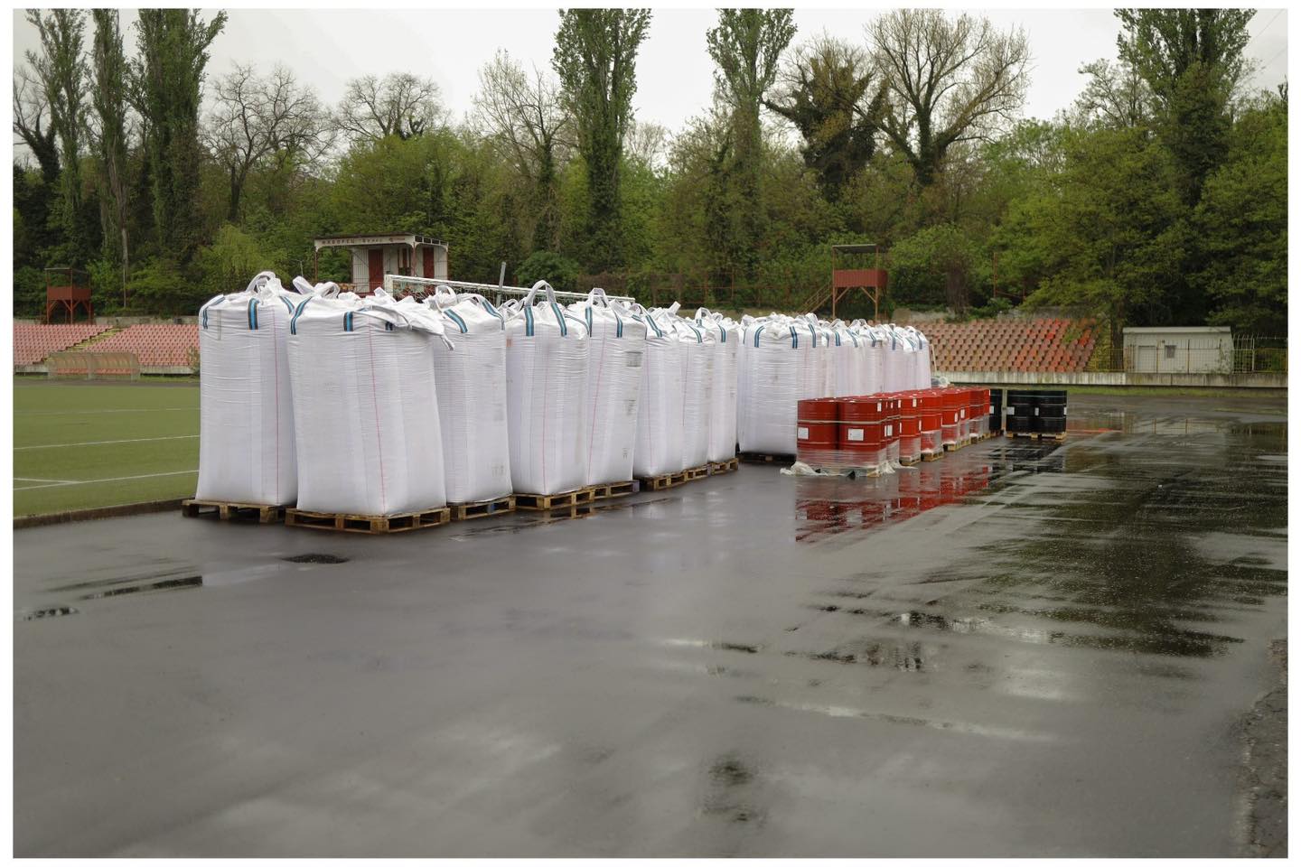 По завршените подготвителни зафати и асфалтирање атлетската патека на Градски стадион е подготвена за постилање на новата тартан подлога. Со стабилизирање на временските услови целосно ќе биде завршена реконструкцијата на атлетската патека.