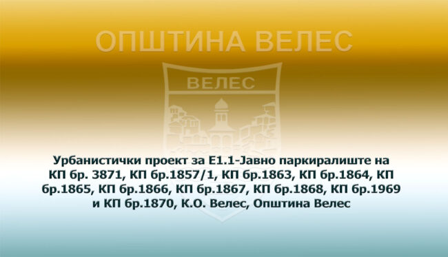 Градоначалникот на Општина Велес, постапувајќи по барањето поднесено под УП број 1310-18 од 23.03.2022 година од страна на Друштво за градежништво, промет, посредување и услуги ТИПИНГ ДООЕЛ Велес, за одобрување на проектна програма, врз основа на член 58 од Законот за урбанистичко планирање (Сл.Весник на РСМ бр.32/2020), член 58 и член 60 од Правилникот за…