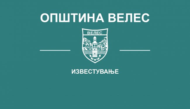 Почитувани, Општина Велес Ве информира дека настанот што ќе се одржи на 4 јуни (петок), по повод пуштање во употреба на новоизграденото езерце и новата зелена површина во Градски парк, од оправдани причини се поместува еден час порано и ќе започне во 10:00 часот. Настанот се одржува во рамки на одбележување на 5 јуни Светскиот…