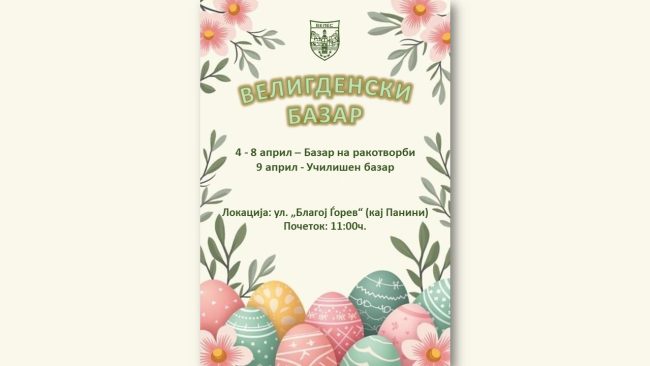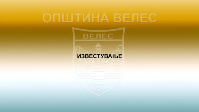 Почитувани, Општина Велес ве информира дека поради одржување на настан ќе биде воведена привремена забрана за сообраќај во Градскиот парк. Забраната ќе важи на 04 април (сабота) во периодот од 10:00 до 15:00 часот. Настанот што ќе се одржи од 11:00 до 14:30 часот во Градскиот парк е презентација на воена опрема, борбени возила и…