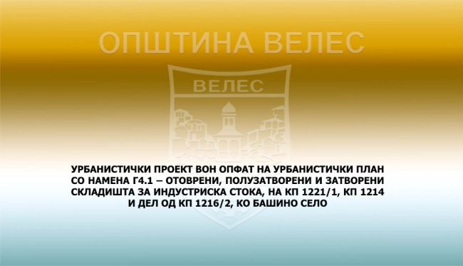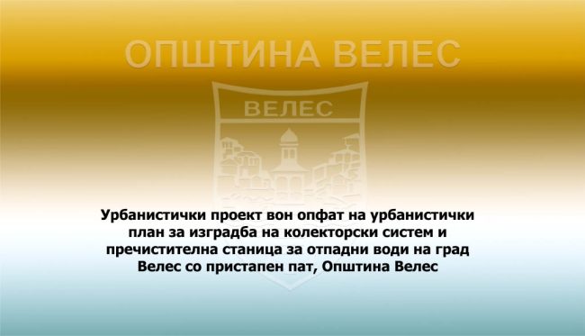 Урбанистички проект вон опфат на урбанистички план за изградба на колекторски систем и пречистителна станица за отпадни води на град Велес со пристапен пат, Општина Велес