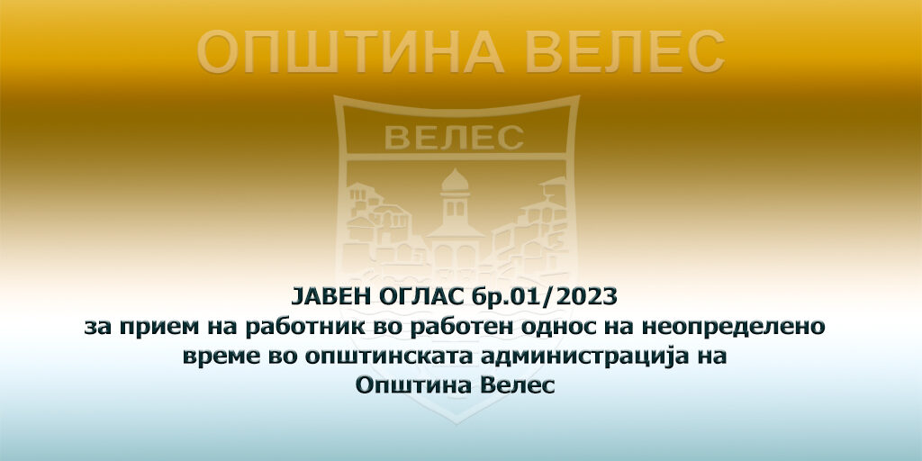 Општина Велес има потреба од работник за засновање на работен однос на неопределено време за следното работно место: