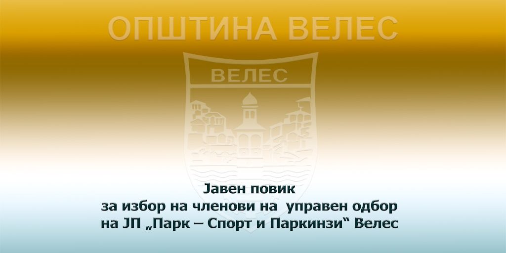 Предмет на Јавниот повик е спроведување на постапка за избор на два члена на управен одбор на ЈП „Парк – Спорт и Паркинзи“ Велес.