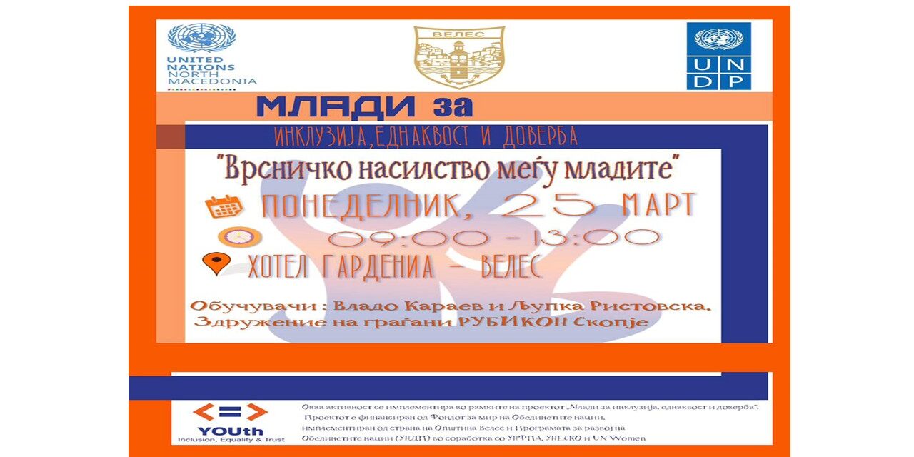 Едукативни работилници чија целна група се младите, Општина Велес ќе одржи во наредните десетина дена. Теми на работилниците ќе бидат врсничкото насилство, булингот,инклузија и конструктивни наративи и менталното здравје кај младите како предизвик на новото време. Тие се реализираат со цел да се поттикнат локални младински политики и младински активизам.