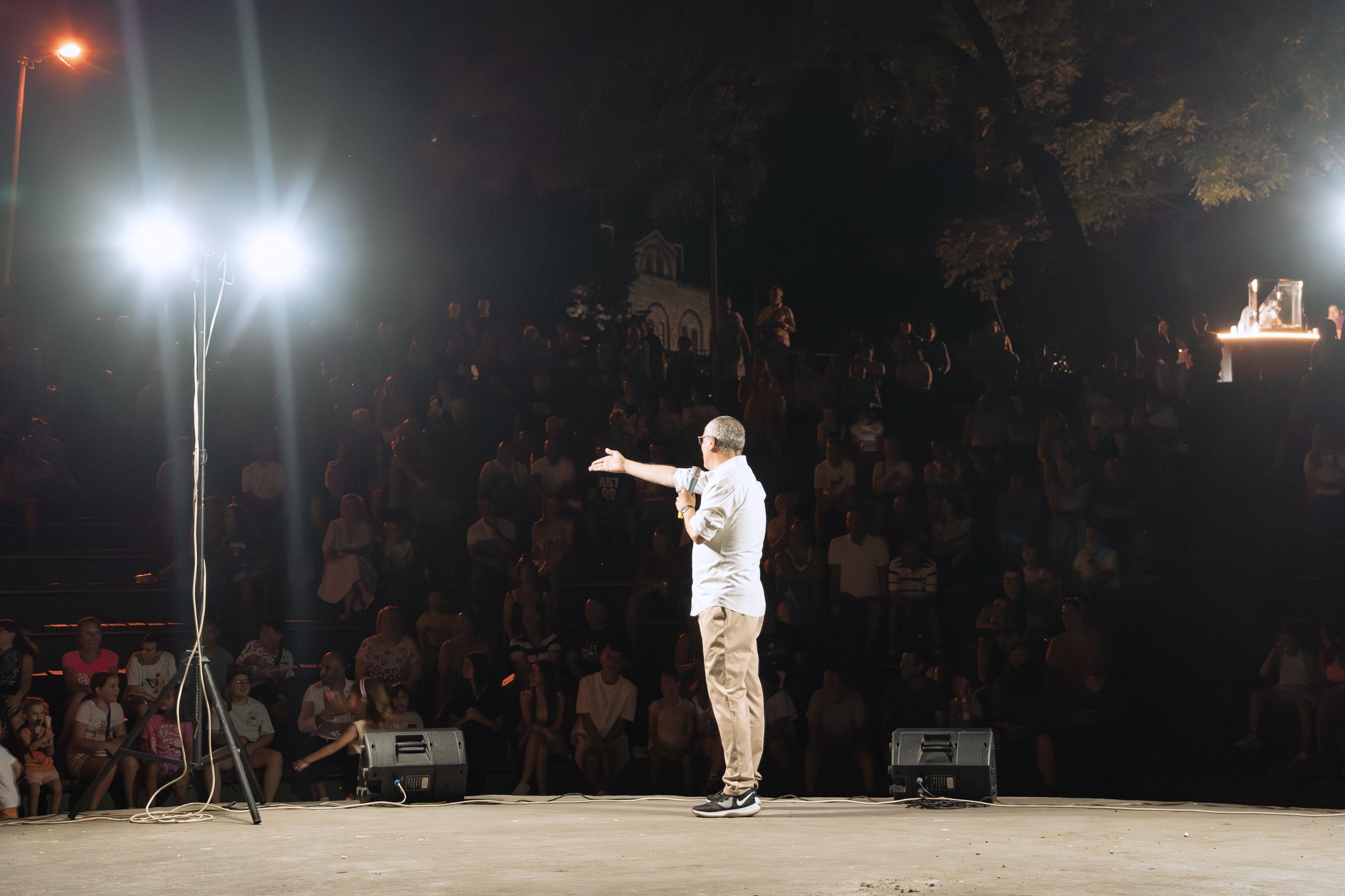 Најдобриот саат и кусур“ на стенд ап комичарот Пеџа Бајовиќ, вчеравечер во Амфитеатарот, ја насмеа и расположи велешката публика. Со настапот, ветеранот и пионер на стедн ап комедиската сцена ја одбележа својата две децениска кариера. Неговиот карактеристичен хумор не ги остави рамнодушни велешани кој во голем број дојдоа на уште една летна забавна вечер во рамки на манифестацијата „Велешко лето 2025“.