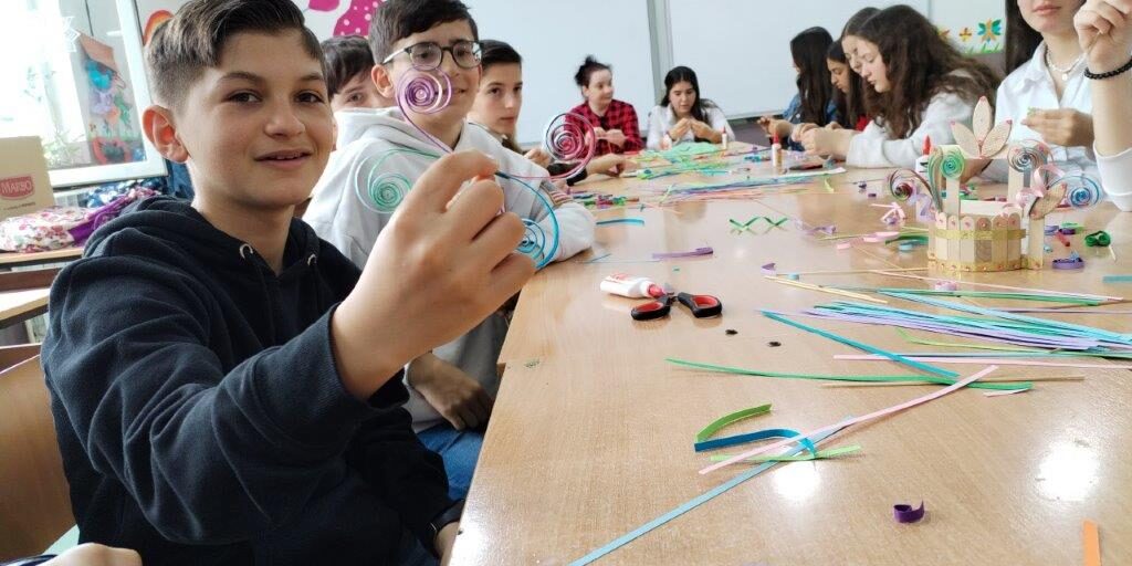 Во рамките на проектот „И хартијата има вредност – рециклирај за здрава иднина!”, денес, учениците од ООУ „Лирија“ – с.Бузалково, Велес со примена на квилинг техника на креативен начин создадоа уметнички дела за украсување на честитки изработени од рециклирана хартија. Квилинг е техника на изработка на слики од хартиени ленти или уметност на виткање на хартија во боја. Целта на проектот е подигнување на свеста за заштита на животната средина и зголемување на знаењето за начинот на рециклирање на хартијата.