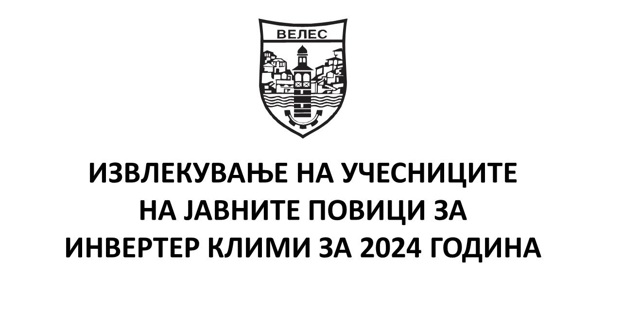 Се известуваат граѓаните на Општина Велес кои имаат аплицирано за субвенционирање на инвертер клима уреди дека извлекувањето на учесниците на јавните повици ќе се одржи во четврток 26 септември 2024 година, со почеток во 17:00 часот во Електронската сала на Општина Велес. Извлекувањето ќе се пренесува во живо на јутјуб каналот на Општина Велес.