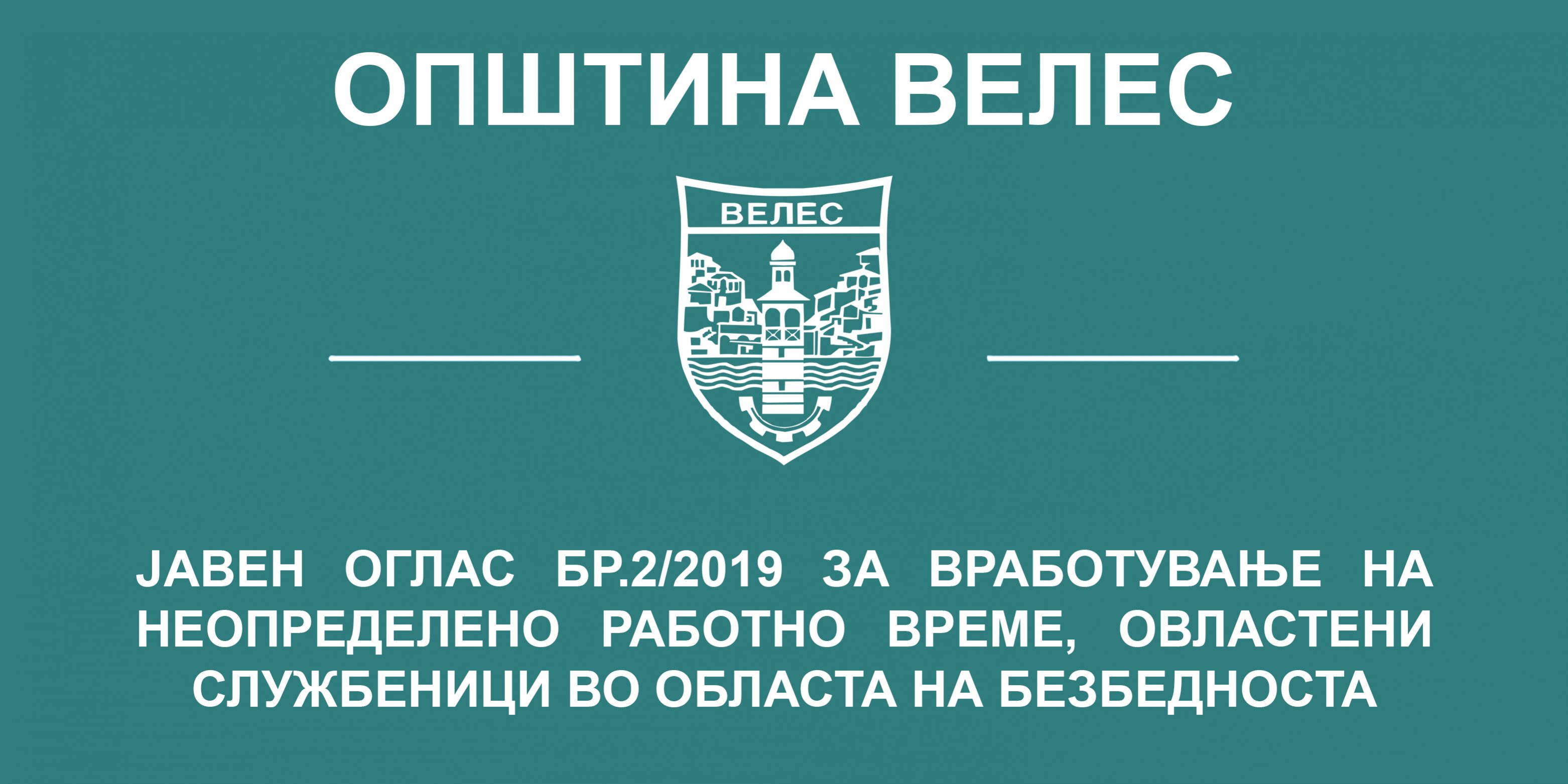 Општина Велес има потреба од вработување на неопределено работно време на 7 (седум) овластени службеници во областа на безбедноста.