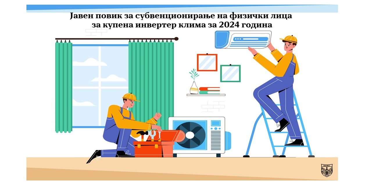 Општина Велес на физичките лица кои ќе купат инвертер клима уред од денот на објавувањето на Јавниот повик 11.07.2024 година заклучно со 08.08.2024 година, ќе им субвенционира дел од трошоците направени при купување инвертер клима уред.