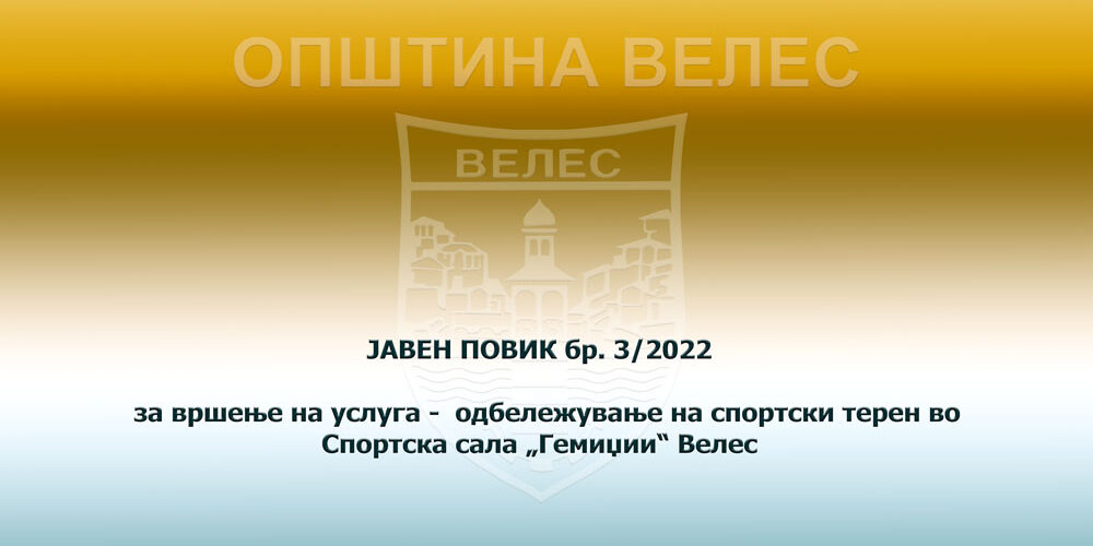Јавното претпријатие „Парк – Спорт и Паркинзи“ Велес, објавува јавен повик за вршење на одбелжување на спортски терен во Спортска сала „Гемиџии“ Велес.