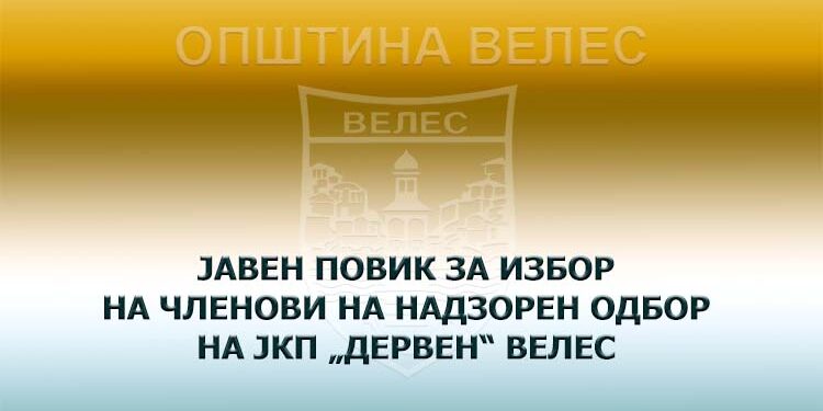 Предмет на Јавниот повик е спроведување на постапка за избор на два члена члена на надзорен одбор за контрола на материјално-финансиското работење на ЈКП „Дервен“ Велес.