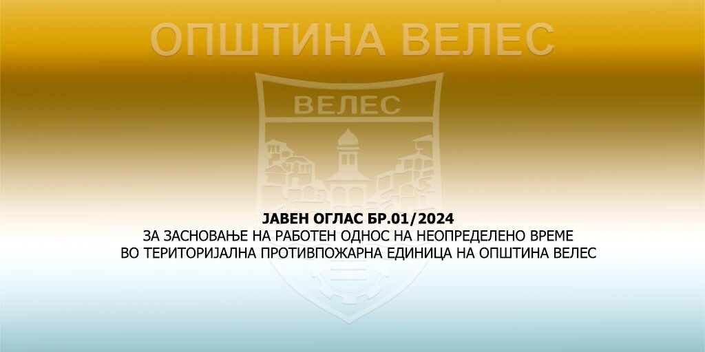Територијална противпожарна единица на Општина Велес има потреба од вработување/засновање на работен однос на неопределено време на 3 (тројца) извршители за следното работно место: