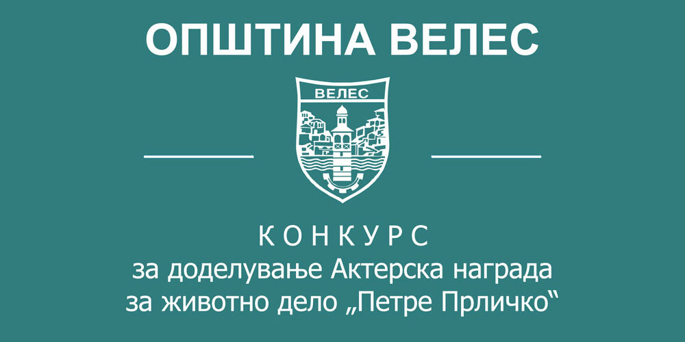 Општина Велес врз основа на Одлуката на Советот на Општина Велес за востановување на наградата за животно дело „Петре Прличко“ („Сл. гласник на Општина Велес“ бр.3/06 и 11/15), а во соработка со НУЦК Театар „Јордан Хаџи Константинов-Џинот“ од Велес, распишува