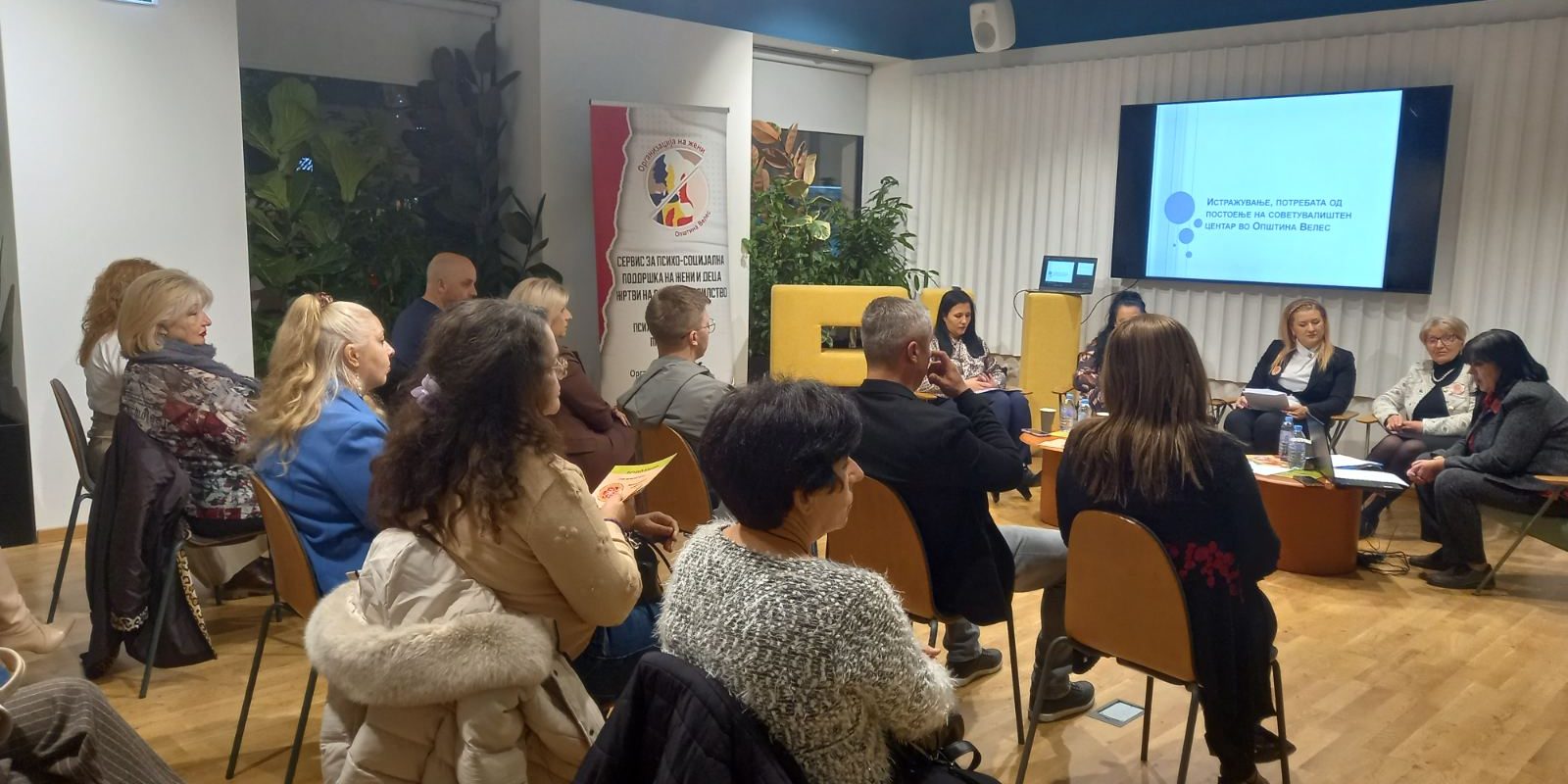 На панел дискусијата свое излагање имаа советнички од советот на Општина Велес, Весна Атанасовска и Пандорка Лазаровска Прличкова, претседателката на Организацијата на жени Мирјана Трајкова и психологот Ангелина Димовска Стојанова од Сервисот за психолошка помош и поддршка на жени жртви на семејно насилство.