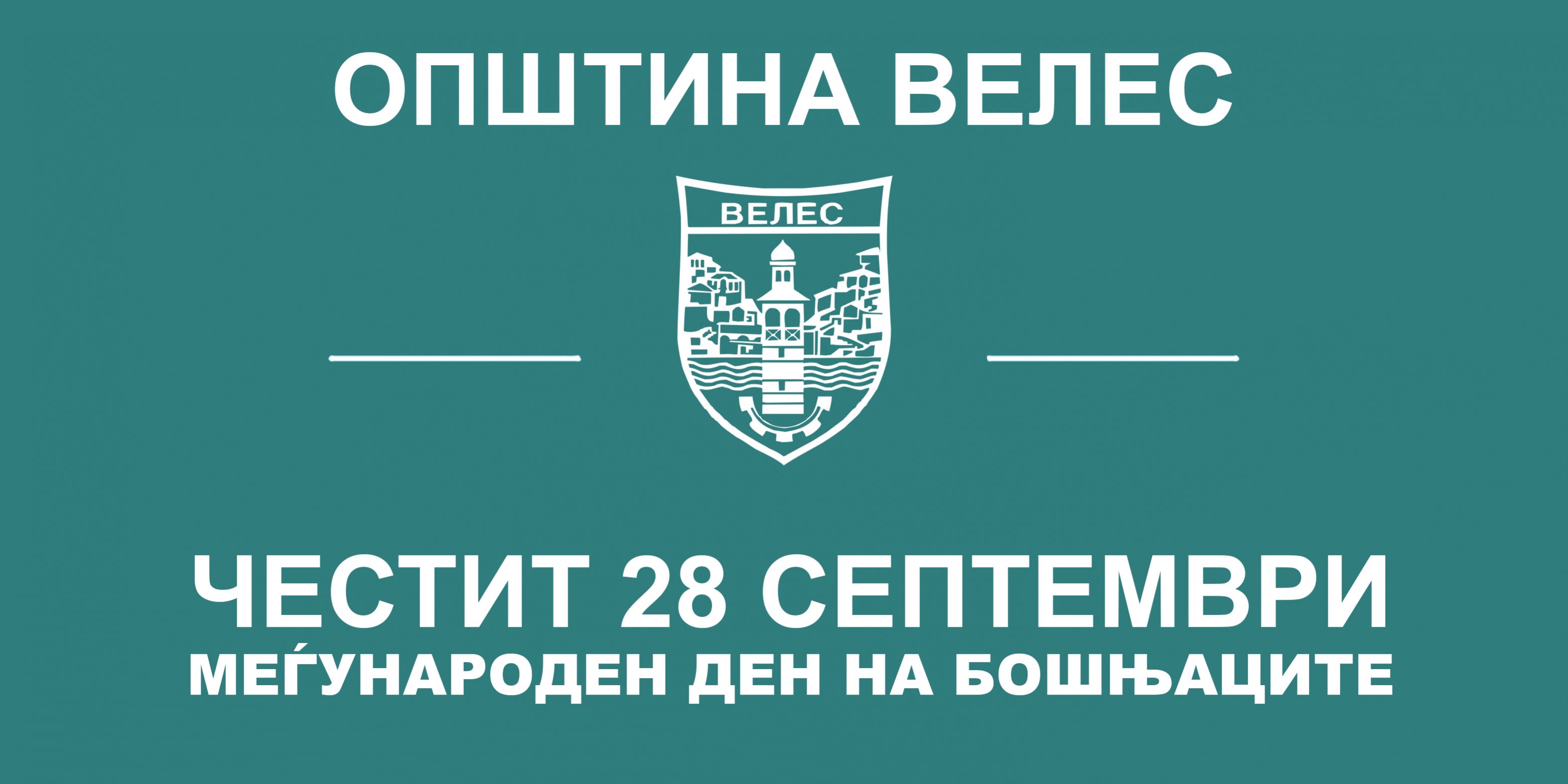 Во мое лично име, во име на Советот и во име на граѓаните во Општина Велес, Ви упатувам искрени честитки по повод 28 Септември, Меѓународниот ден на Бошњаците.
