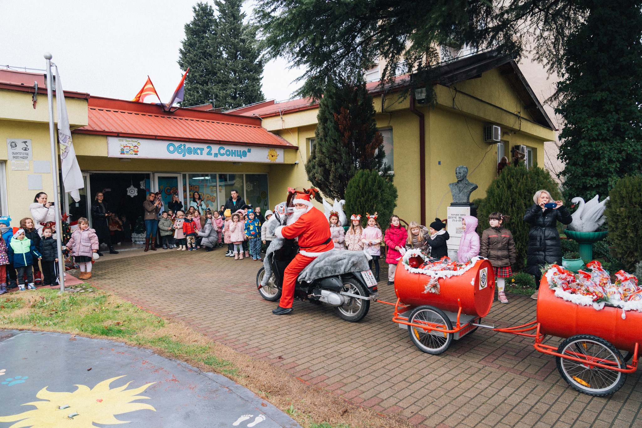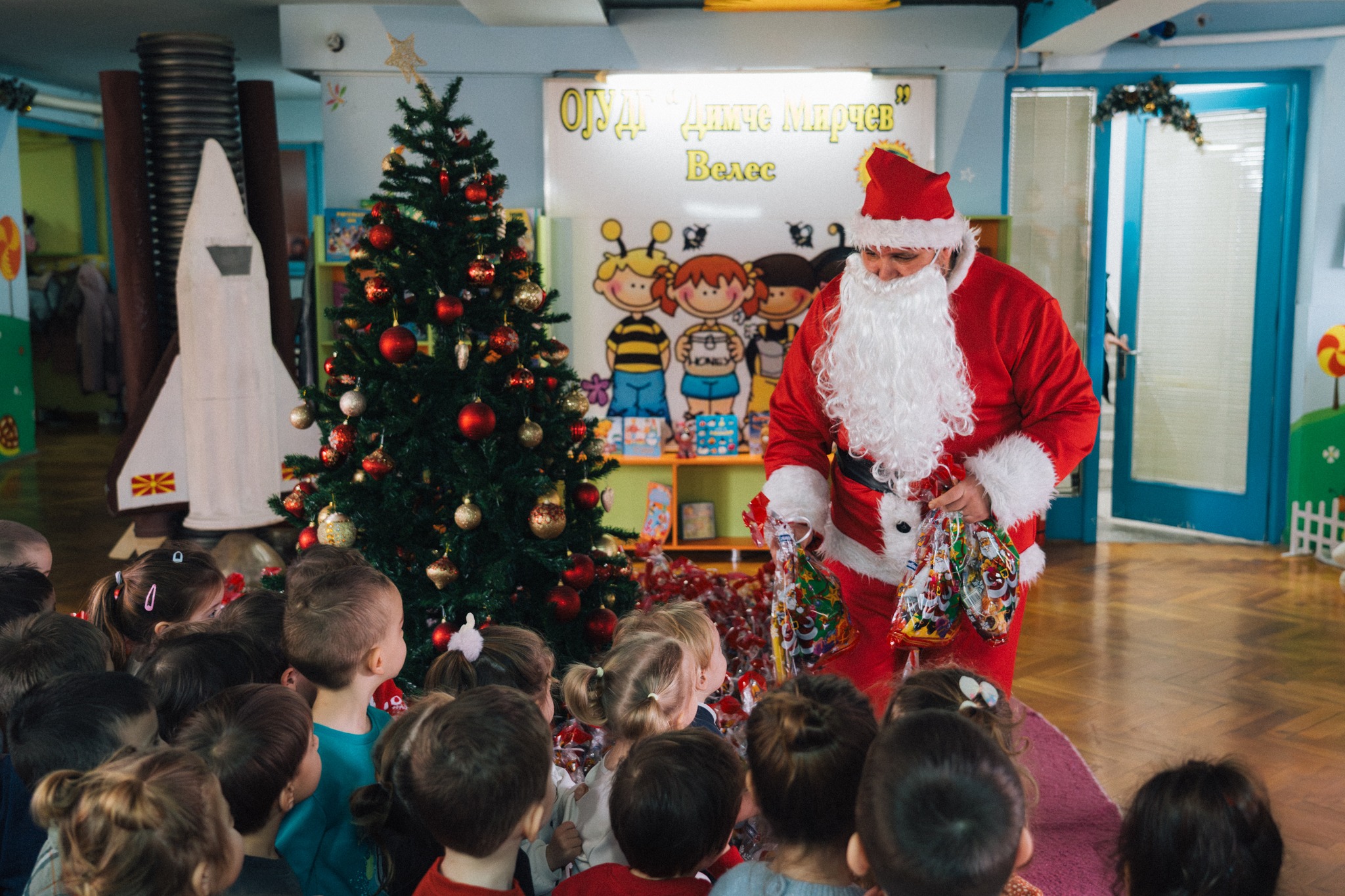 Дедо Мраз пристигна во детските градинки. Вчера и денес беа поделени пакетчиња на децата од сите осум клона на Детската градинка „Димче Мирчев“ во Велес, Караслари и во Градско. Новогодишните пакетчиња се донација на Општина Велес.