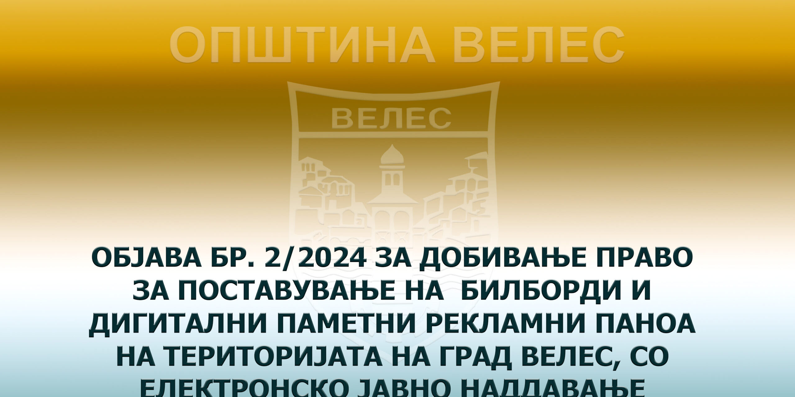 на  билборди и дигитални паметни рекламни паноа на територијата на град Велес, со електронско јавно наддавање