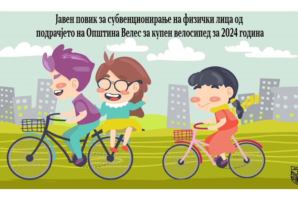 Јавен повик за субвенционирање на физички лица од подрачјето на Општина Велес за купен велосипед за 2024 година