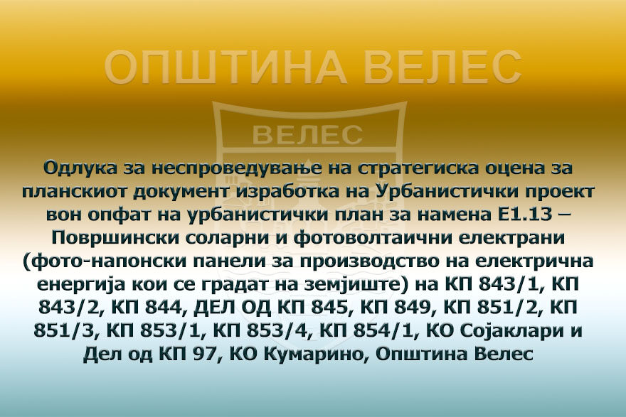 Врз основа на чл.69 од Законот за животна средина (Службен весник на Р.М. бр. 53/05, 81/05, 24/07, 159/08, 83/09, 48/10, 51/11, 123/12, 93/13, 42/14, 44/15, 129/15 , 39/16, 99/18, 89/22…