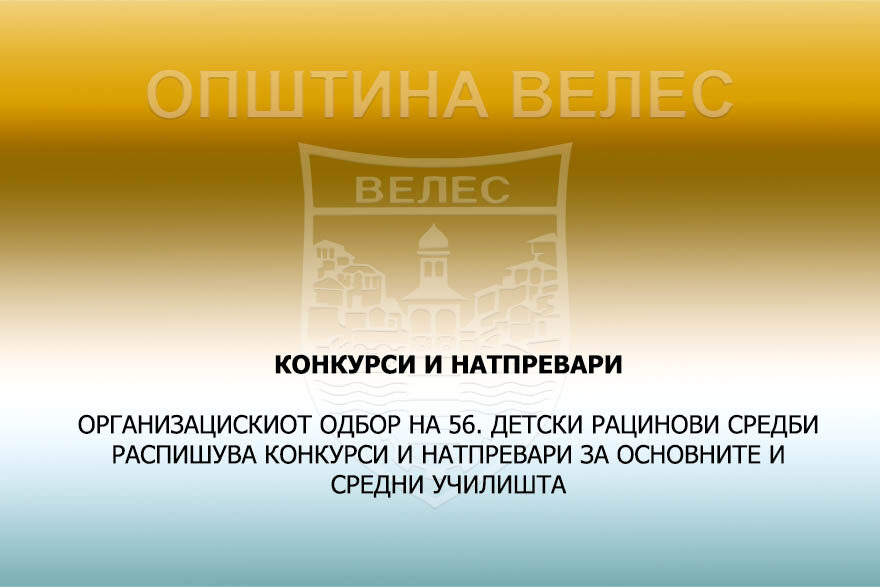 ОРГАНИЗАЦИСКИОТ ОДБОР НА 56. ДЕТСКИ РАЦИНОВИ СРЕДБИ РАСПИШУВА КОНКУРСИ И НАТПРЕВАРИ ЗА ОСНОВНИТЕ И СРЕДНИ УЧИЛИШТА