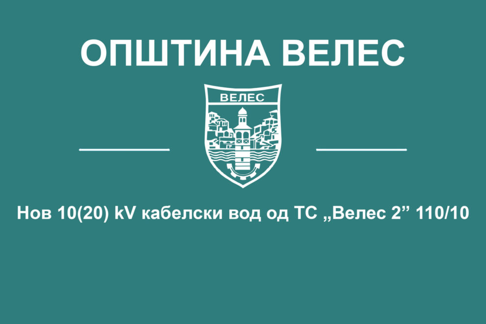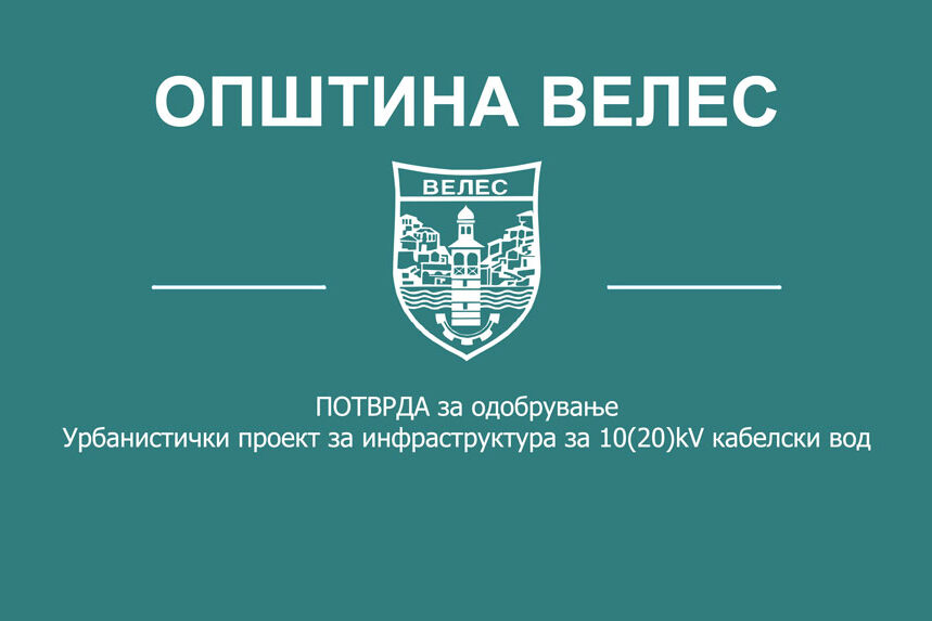 Се издава потврда за одобрување на Урбанистички проект за инфраструктура за нов 10(20)kV кабелски вод од ТС „Велес 2“ 110/10kV до кабелска спојница за КО Велес Потврда Синтезен