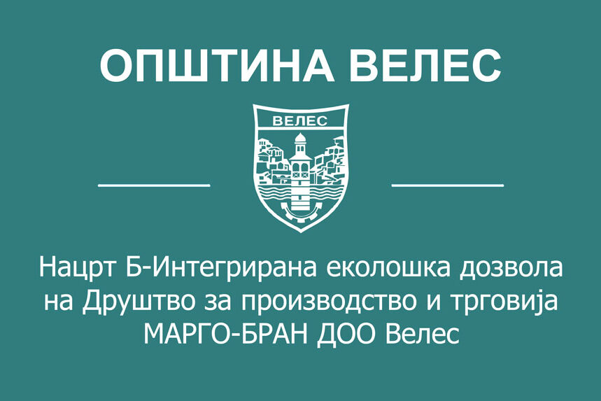 Општина Велес, изготви Нацрт Б-Интегрирана еколошка дозвола на Друштво за производство и трговија МАРГО-БРАН ДОО Велес со седиште на ул.Димитар Андонов Папрадишки бр.143 Велес, за инсталација за интензивно свињарство со…