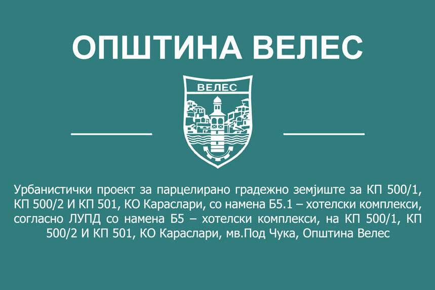 Урбанистички проект за парцелирано градежно земјиште за КП 500/1, КП 500/2 И КП 501, КО Караслари, со намена Б5.1 – хотелски комплекси, согласно ЛУПД со намена Б5 – хотелски комплекси,…