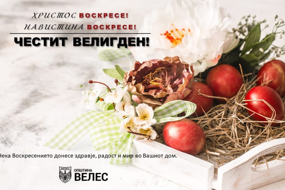 По повод големиот христијански празник Велигден, Општина Велес упатува искрени честитки со желби за добро здравје, мир и благосостојба. Нека светлината на Христовото Воскресение ги исполни вашите домови со љубов,…