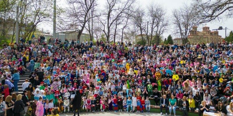 Стотици дечиња од градинката „Димче Мирчев“ и од основните училишта во градот со своите омилени маски, инспирирани од ликовите на цртаните филмови, продефилираа низ градските улици, означувајќи го највеселиот и најшегобијниот ден во годината 1 Април, Денот на шегата. Централната манифестација се одржа во Амфитеатарот во Младински парк каде учесниците на Априлијадата се забавуваа со кловнови, музика и игра.