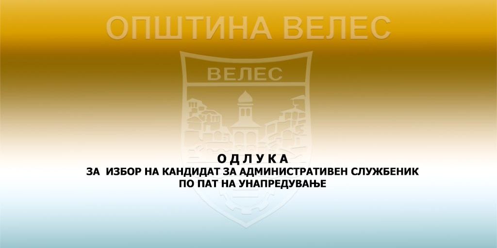 Општина Велес спроведе постапка за унапредување на административен службеник во Општина Велес, за следнoто работнo местo: