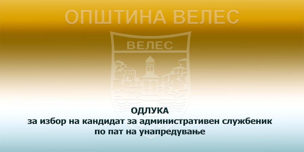 Општина Велес спроведе постапка за унапредување на административен службеник во Општина Велес, за следнoто работнo местo: