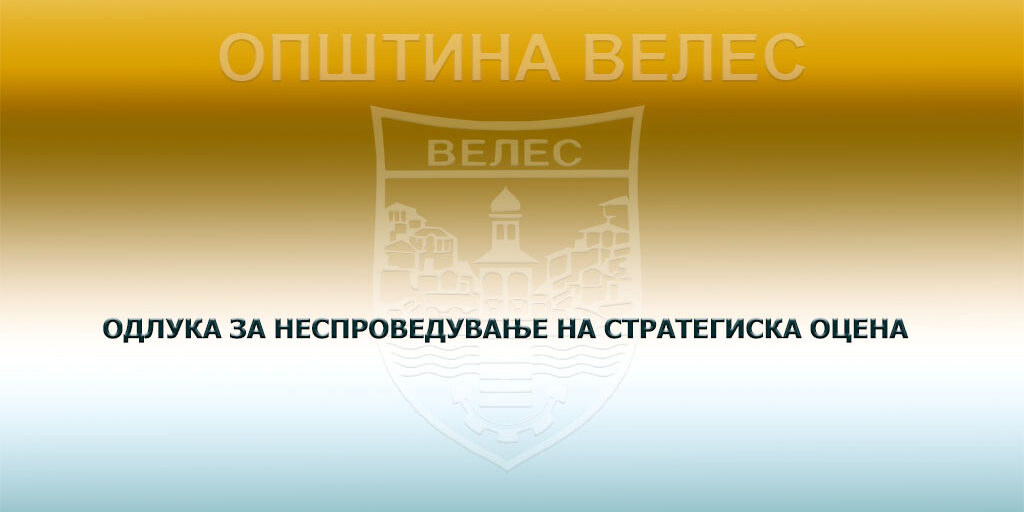 Одлука за неспроведување на стратегиска оцена За планскиот документ изработка Урбанистички проект вон опфат на урбанистички план за Е1.13 (Фотонапонски панели за производство на ел.енергија кои се градат на земја) “Свети Илија 3” на дел од КП бр.14232/1 К.О. Велес, Општина Велес