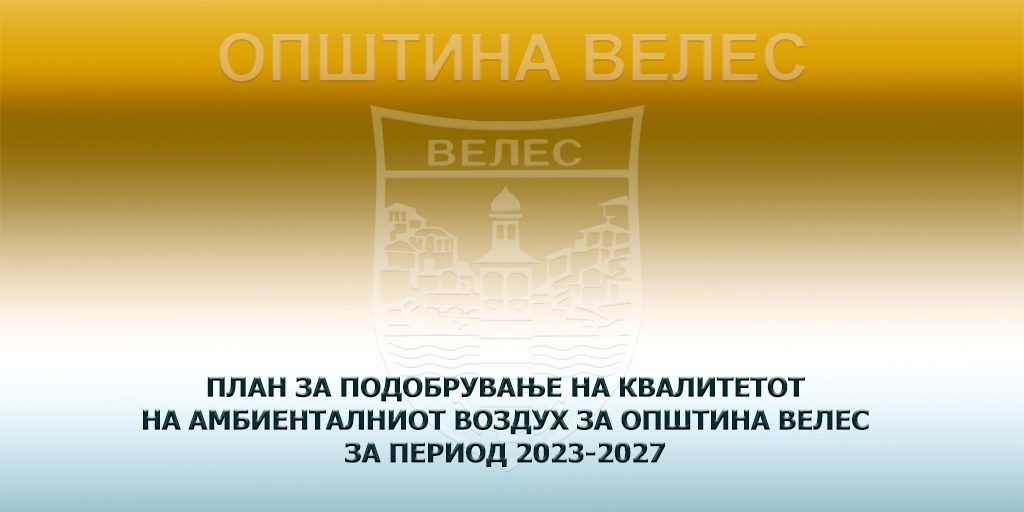 Планот за подобрување на квалитетот на амбиентниот воздух за Општина Велес (2023-2027), усвоен на Седница на Совет на општина Велес одржана на 29.08.2024 год.