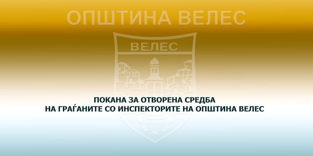 Општина Велес, Одделението за инспекциски надзор и НВО Инфоцентарот, на 6 јули 2022 година (среда), во периодот од 9.30 до 11.30 часот, во просториите на Одделението за инспекциски надзор (на ул. Борис Трајковски, бр. 19, во зградата на СИЗ), организираат отворена средба со инспекторите на Општината.