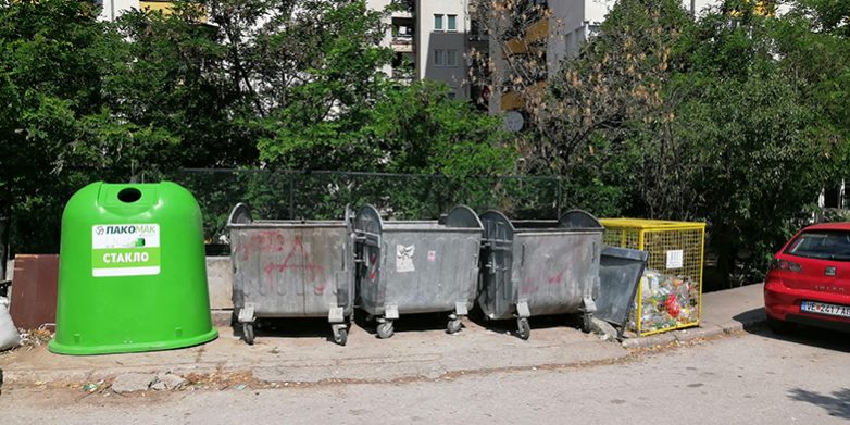 Собирањето на отпадно стакло е координирано од страна на ПАКОМАК Скопје. Во определен временски интервал садовите се празнат од страна на правно лице со кое ПАКОМАК има склучено договор. Документите за превземените количини од територијата на општината се предаваат во ЈКП Дервен.