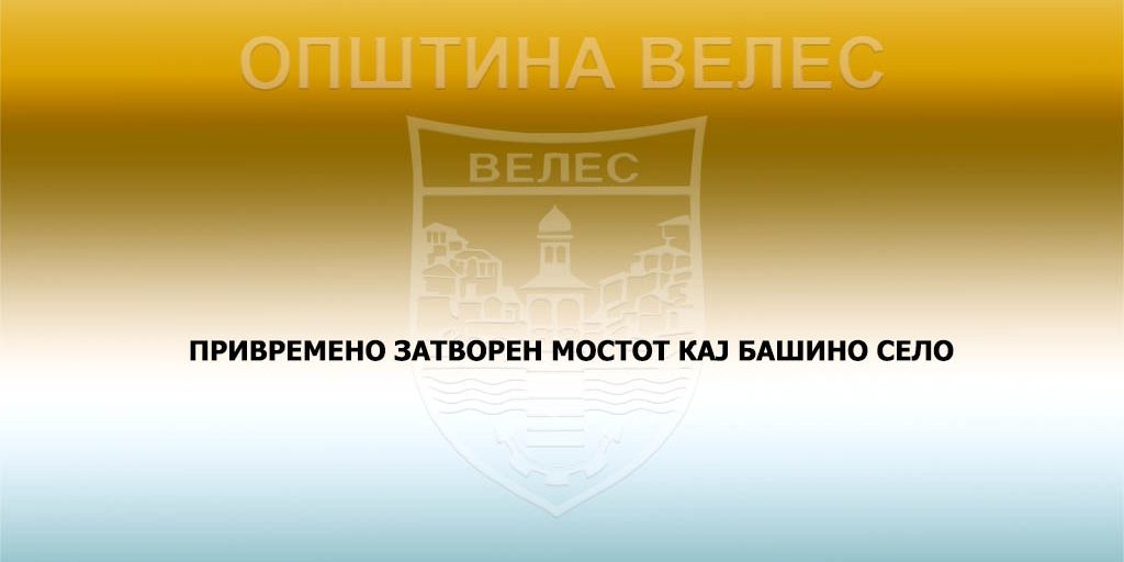 Мостот на Вардар кај Башино село од денеска е привремено затворен за секаков вид на сообраќај. Ваква одлука донесоа надлежните институции откако го добија официјалниот извештај од Градежниот факултет во кој стои дека на мостот се забранува секаков вид на сообраќај бидејќи конструкциите се од висок ризик. Одлуката во јавноста ја соопштија премиерот Христијан Мицкоски, министерот за внатрешни работи Панче Тошковски, директорот на ЈПДП Коце Трајановски и градоначалникот на Општина Велес Марко Колев