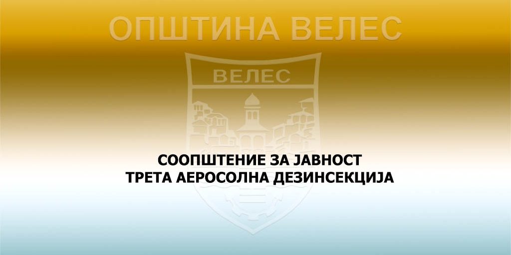 Согласно Законот за заштита на населението од заразни болести, за спроведување на дезинсекција на подрачјето на Општина Велес, како општа мерка за заштита на населението од заразни болести, Општина Велес го издава следното соопштение за јавност: