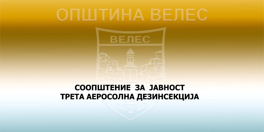 Согласно Законот за заштита на населението од заразни болести, за спроведување на дезинсекција на подрачјето на Општина Велес, како општа мерка за заштита на населението од заразни болести, Општина Велес го издава следното соопштение за јавност