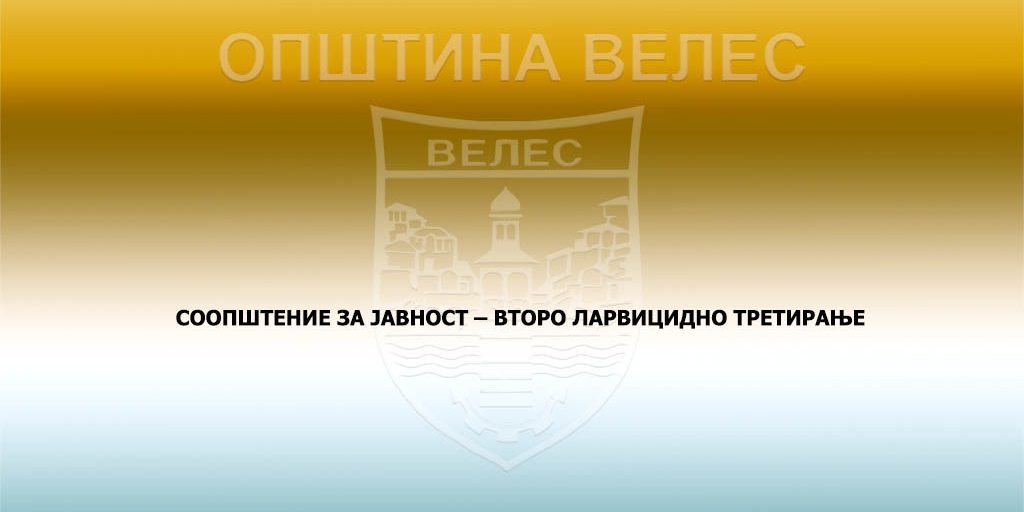 Согласно Законот за заштита на населението од заразни болести, за спроведување на превентивна теристичка дезинсекција на подрачјето на Општина Велес, како општа мерка за заштита на населението од заразни болести, Општина Велес го издава следното соопштение за јавност: